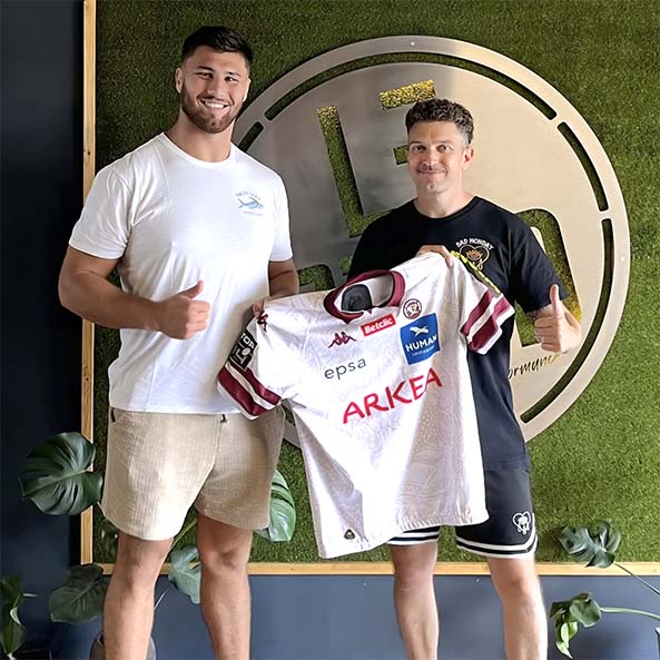 Dacquois d'origine, international français et champion d'Europe 2025 avec l'Union Bordeaux Bègles, Cyril Cazeaux connaît l'importance d'un bon accompagnement sportif. Deuxième ligne de l'UBB depuis 2015, il partage les valeurs du STUD : exigence, dépassement et bienveillance. Attaché à ses racines landaises, il soutient ce projet avec fierté.